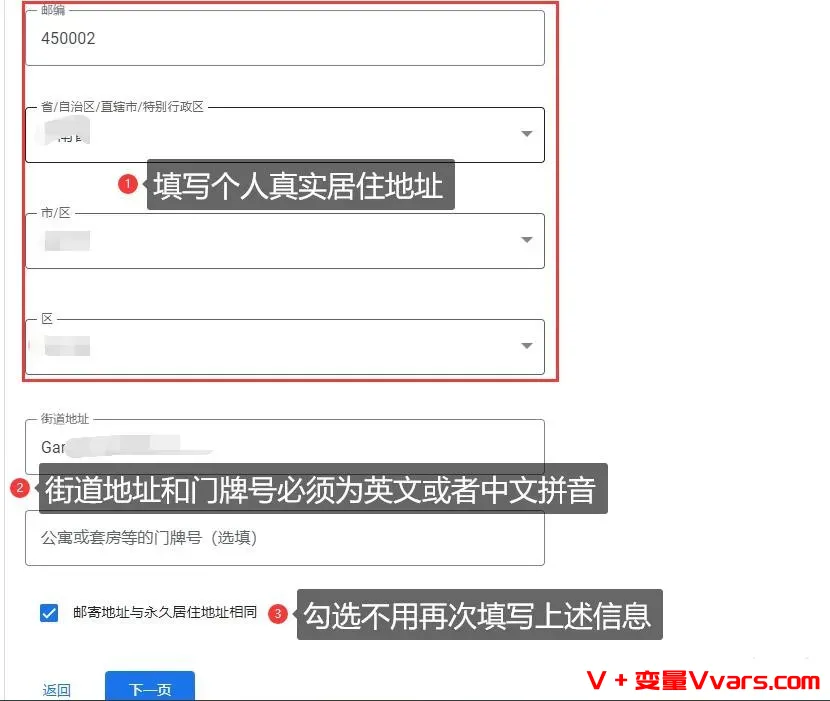 直接填写国内的个人居住地址,值得注意的是永久居住地址不要勾选,否则需要提供其他相关证明材料。